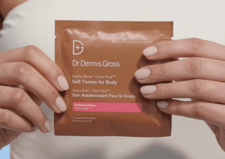 Get your glow on with Dr. Dennis Gross Alpha Beta Glow Pad for Body - where skincare meets self-tanning in one easy swipe. These clever little wipes deliver a natural-looking bronze while treating your skin like royalty.